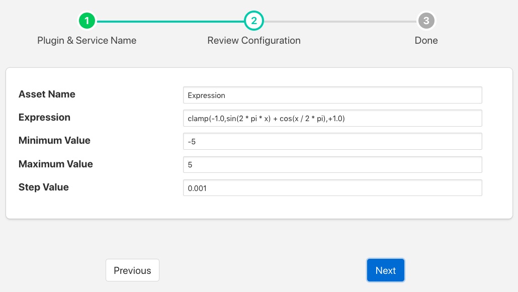 The foglamp-south-expression plugin is a plugin that is used to generate synthetic data using a mathematical expression to generate data that changes over time. The user may configure the plugin with an expression of their choice and define a period in terms of samples put period of the output and the increment between each sample.
