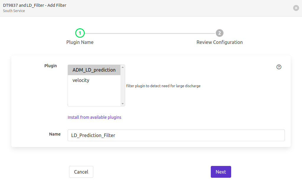 Configuring the filter, starts with selecting the filter and giving an application name for it. The screen will look like the following.
