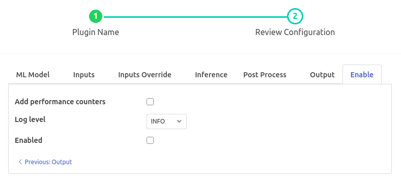 Following this the next screen will have the plugin configuration as shown below: