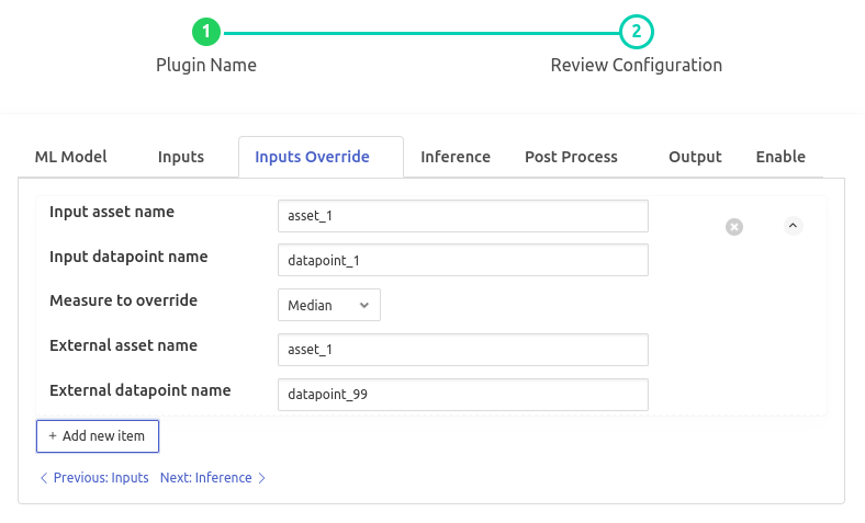 - ‘Input datapoint name’: type: `string` default: ‘datapoint_1’: