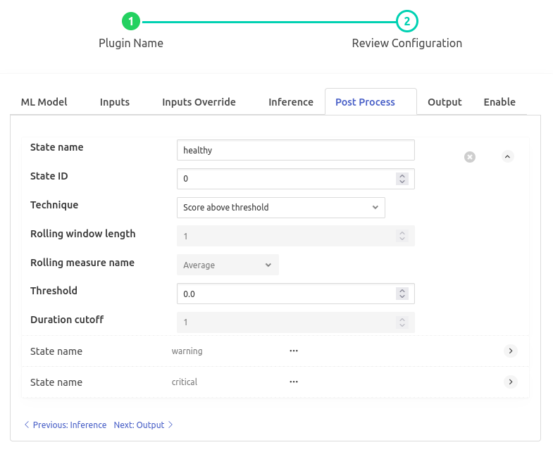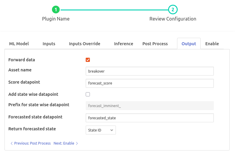 - ‘Return forecasted state’: type: `enumeration` default: ‘State ID’: